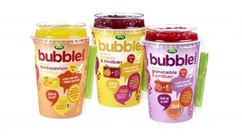 ImageLa compañía sueco/danesa Arla foods, desarrollo junto con Döhler (muy importante empresa alemana que suministra productos para el desarrollo e innovación de alimentos y bebidas) una bebida láctea descremada y saborizada, con burbujas rellenas de sabores frutales: Arla Bubble Latte. Las burbujas desarrolladas con tecnología de Döhler son 100% naturales. Esta nueva experiencia, nutrutiva a la par que divertida pretende atraer a consumidores jóvenes. En tres sabores: Frambuesa, mango y fresa este producto fue premiado como la mejor innovación láctea en Drinktec.
