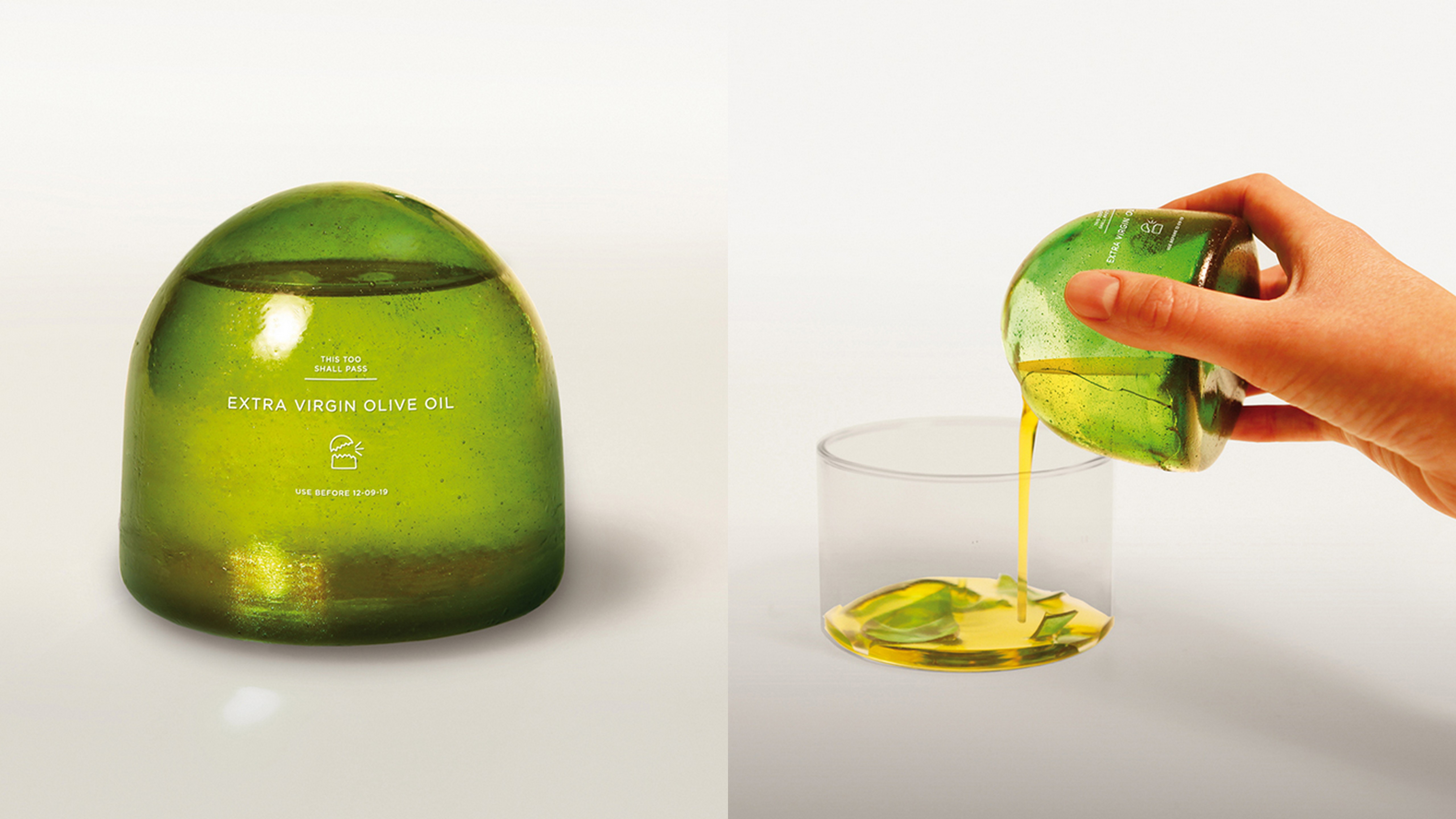 Packaging de aceite: Los nuevos envases de aceite serán de azúcar caramelizada, recubiertos con cera. Para abrirlo, se necesita romperlo como un huevo.