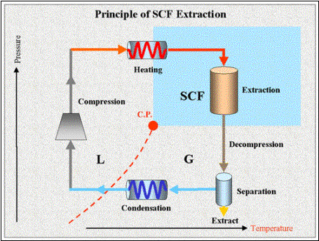 - Extracción supercrítica de fluido. Un material soluble se extrae de un material alimenticio a través de un disolvente (la sacarosa de la remolacha o el café de los granos).