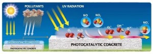 Es así como al utilizarse en el pavimento de alguna calle donde se origina polución, el proceso de fotocatálisis descompone elementos orgánicos como alergénicos, algas, bacterias y el óxido de nitrógeno producido por el combustible de los automóviles el cual, a su vez, contribuye a la formación de la archiconocida lluvia ácida.