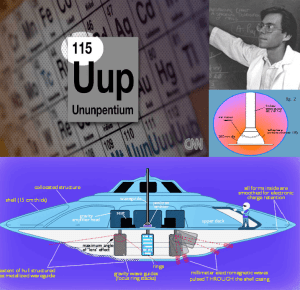 En 1989, 15 años antes del descubrimiento del Ununpentio, Lazar afirmó que el combustible de las naves extraterrestres era el elemento 115 en forma estable. Explicaba además que este elemento aportaba una fuente de energía la cual produce unos efectos anti gravitatorios bajo un continuo bombardeo de protones, junto con antimateria para conseguir una gran producción de energía que permitiría que estas naves realizaran largos viajes estelares.