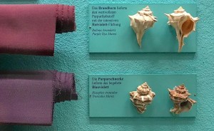 Muestras de tejido teñidas con púrpura de Tiro, un pigmento tan valioso que en el año 301 d.C. llegó a valer tres veces su peso en oro: unos 66.000 dólares por libra. Vía CONAGEN.