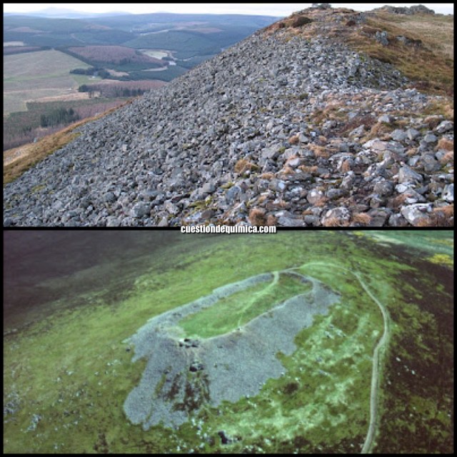 Tap o’ Noth, en el noreste de Escocia, es uno de los ejemplos más conocidos de fortaleza vitrificada. Sus muros, formados por rocas parcialmente fundidas, evidencian la exposición a temperaturas extremadamente altas que llegaron a fusionar la piedra.