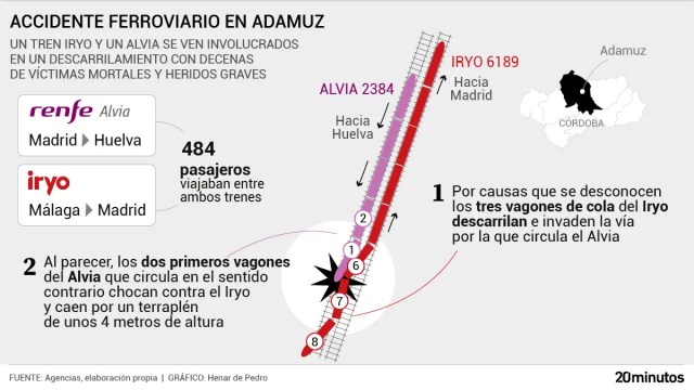 Según la información disponible en el momento de redactar este artículo, el siniestro se produjo el pasado Domingo 18 de Enero por la tarde, en el término municipal de Adamuz (provincia de Córdoba), en un tramo de la red ferroviaria de alta velocidad. En torno a última hora de la tarde, un tren de alta velocidad descarriló mientras circulaba por la línea y acabó invadiendo la vía contigua, por la que circulaba otro convoy en sentido contrario.