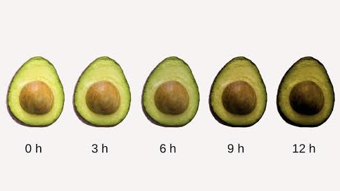 - Aguacate: su pulpa se vuelve marrón al exponerse al aire por oxidación enzimática (polifenoloxidasa). Esto no indica que esté dañado; sigue siendo comestible, aunque el sabor puede volverse más amargo. Solo cuando aparecen manchas negras profundas, mal olor o moho, se considera deteriorado.