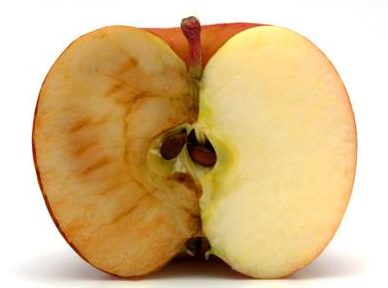 Cuando cortas una manzana, la polifenol oxidasa (PPO) de la fruta oxida sus polifenoles, formando melaninas pardas en minutos. Este cambio de color es solo visual: la manzana sigue siendo comestible.
