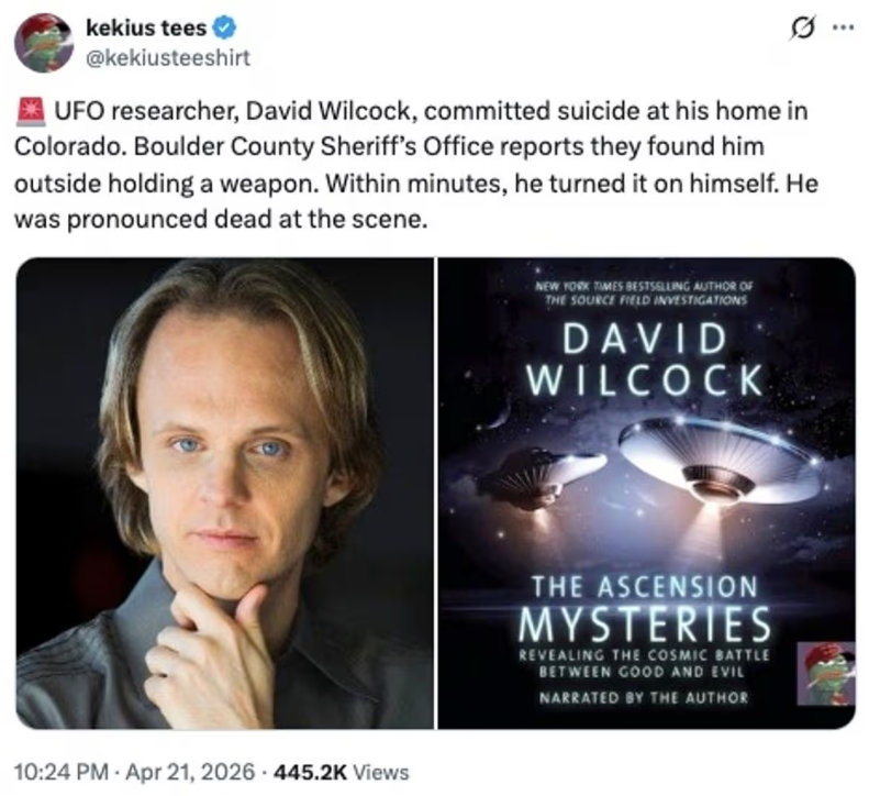 Captura de pantalla 2026-04-25 133237 Publicado abril 25, 2026 en 791 × 724 en ¿Científicos desaparecidos en EE. UU.? Entre hechos, coincidencias y teorías. « Anterior Siguiente » David Wilcock, autor y divulgador centrado en teorías sobre conciencia, civilizaciones avanzadas y posibles realidades no convencionales.